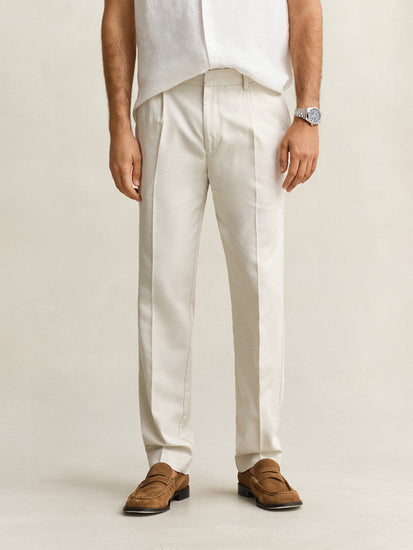 Elevate your style with the GANT Men Off White Slim Fit Lyocell Pant. Crafted from luxurious lyocell fabric, these pants offer a sleek silhouette and unparalleled comfort. Perfect for both casual and formal occasions, these versatile pants will easily become a staple in your wardrobe. The slim fit design provides a modern touch, while the off-white color adds a subtle yet sophisticated flair. Whether you're dressing up for a special event or keeping it casual for everyday wear, these pants are sure to make a statement. Upgrade your look with the GANT Men Off White Slim Fit Lyocell Pant today.