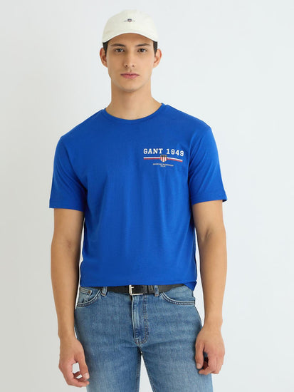 Gant Men Blue Solid Crew Neck Tshirt