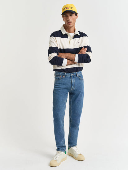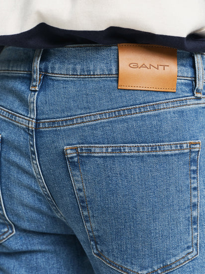 Slim clean wash design gives these jeans a sharp look while keeping them in trend. The solid mid blue worn-in shade adds a casual vibe. Cut with four pockets for function and a neat finish they’re built in a cotton polyester elastane fabric blend that offers comfort and slight stretch. A go-to denim for everyday wear.