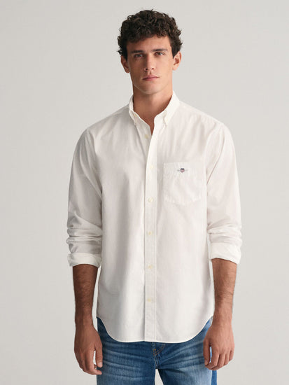 Discover timeless elegance with our classic poplin shirt in crisp white. Designed for the modern man, this shirt features a regular fit that offers comfort and style for any occasion. Crafted from pure cotton fabric, it ensures breathability and softness against the skin. The solid pattern and full sleeves provide a versatile look, while the button-down collar adds a touch of sophistication. With a reliable button closure, this shirt is perfect for both professional settings and casual outings, making it a wardrobe essential.