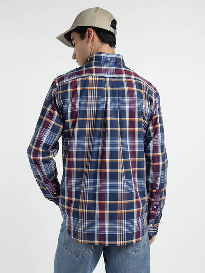 This shirt features a classic button-down collar and long sleeves for a polished look. The regular fit ensures comfort and versatility, perfect for any occasion. The blue check pattern adds a modern touch to this timeless piece, making it a must-have for every mans wardrobe. Stay effortlessly stylish and comfortable with this essential shirt from GANT.