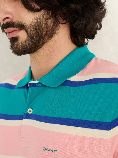 Elevate your casual style with the GANT Men's Multicolor Striped Polo T-Shirt. Crafted from high-quality materials, this versatile shirt features a classic polo design with a modern twist of multicolor stripes, adding a pop of color to your wardrobe. The comfortable fit and breathable fabric make it perfect for all-day wear, whether you are running errands or heading out for a casual weekend brunch. Stay on-trend and effortlessly stylish with this must-have addition to your closet.