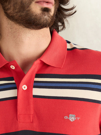 GANT Mens Red Striped Polo T-Shirt