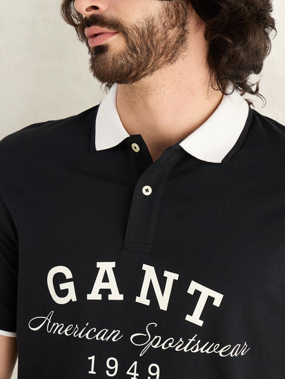 GANT Mens Black Printed Polo T-Shirt
