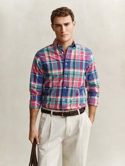 Elevate your casual wardrobe with the GANT Men Multicolour Checked Regular Fit Shirt. Crafted from premium quality materials, this shirt features a timeless multicolour checked pattern that exudes sophistication and style. The regular fit design ensures a comfortable and flattering silhouette for all-day wear. Whether you are dressing up for a night out or keeping it casual for the weekend, this versatile shirt is a must-have addition to your wardrobe. Upgrade your look with the GANT Men Multicolour Checked Regular Fit Shirt.