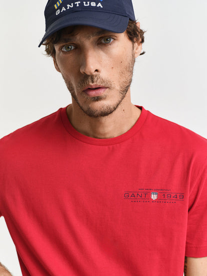 Gant Men Red Solid Round Neck Short Sleeves T-Shirt