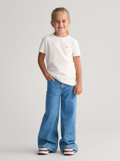 Gant Kids White Solid Round Neck Tshirt