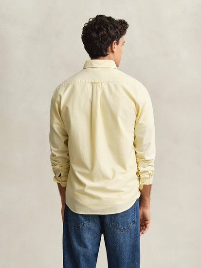 Elevate your wardrobe with the GANT Men Yellow Regular Fit Classic Oxford Shirt. Crafted with quality materials and a timeless design, this shirt offers a perfect blend of style and comfort. The classic oxford fabric ensures durability, making it a versatile piece for any occasion. The regular fit provides a relaxed yet polished look, while the vibrant yellow hue adds a pop of color to your ensemble. Upgrade your everyday outfit effortlessly with this must-have wardrobe essential.