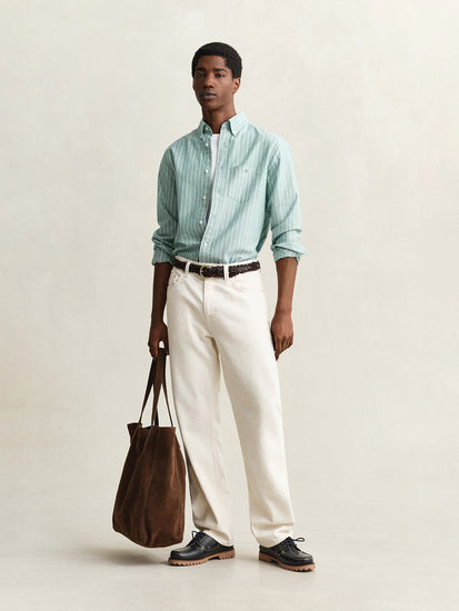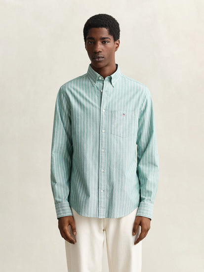 Gant men green striped regular fit classic oxford shirt