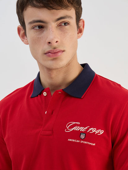 Gant Men Red Solid Pure Cotton Polo Collar T-Shirt