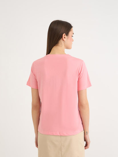 women pink solid crew neck tshirt