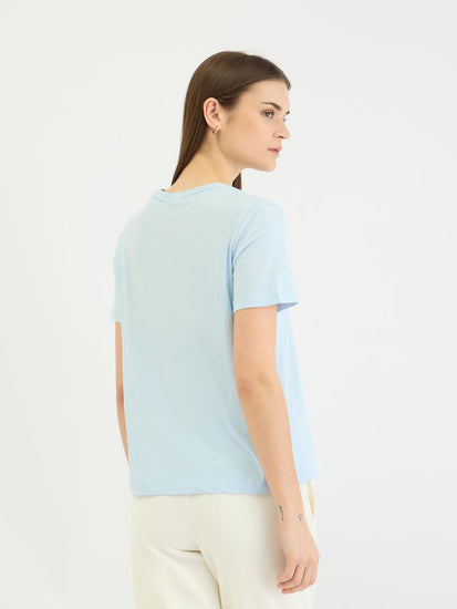 women blue graphic crew neck tshirt