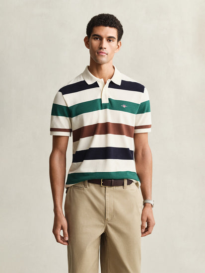 Elevate your everyday style with our GANT Men Multicolour Striped Polo T-Shirt. Crafted from premium materials, this polo shirt features a vibrant multicolour striped design that adds a pop of personality to your wardrobe. The timeless polo silhouette offers a comfortable and versatile fit, perfect for any occasion. Whether you're dressing up for a casual event or simply running errands, this polo shirt effortlessly combines style and comfort. Upgrade your look with the GANT Men Multicolour Striped Polo T-Shirt and stand out from the crowd.