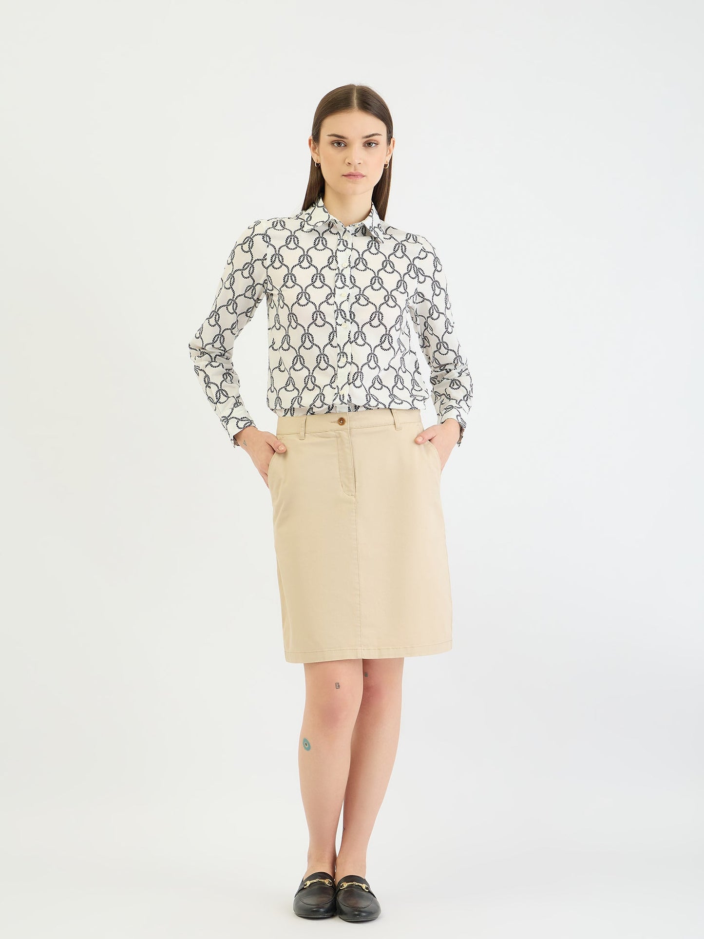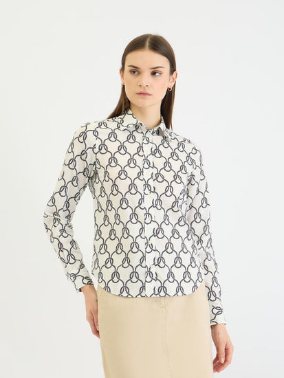 Gant Women White All Over Print Collar Shirt