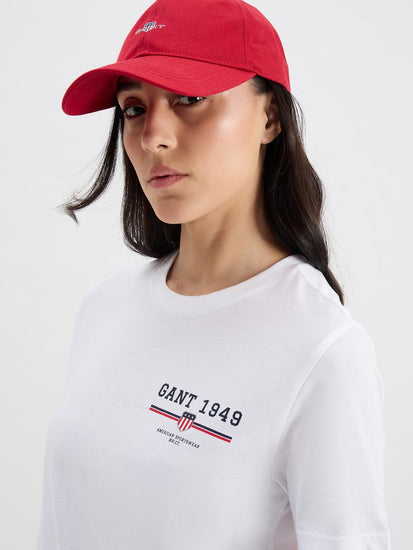 White in colour, this GANT T-shirt will surely add an element of style to your casual wardrobe. This solid T-shirt with a crew neckline and short sleeves is finished with brand logo detail on the top left. Team this comfortable T-shirt with a pair of jeans or joggers to perfect your smart look.
