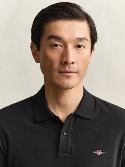 Elevate your casual style with the GANT Men Black Slim Fit Pique Polo T-Shirt. Crafted with premium quality materials, this sleek and versatile polo shirt offers a modern slim fit silhouette that effortlessly flatters your figure. The classic black color adds a touch of sophistication to any outfit, making it perfect for both work and play. Whether you're hitting the golf course or grabbing drinks with friends, this timeless polo shirt is a must-have addition to your wardrobe. Experience comfort and style like never before with GANT.