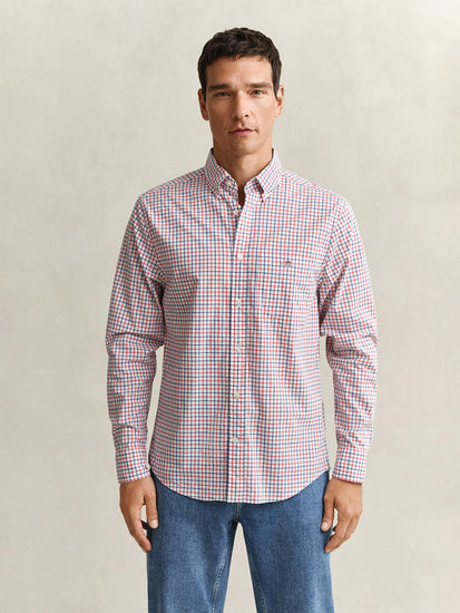 GANT Men Red Checked Regular Fit Poplin Shirt