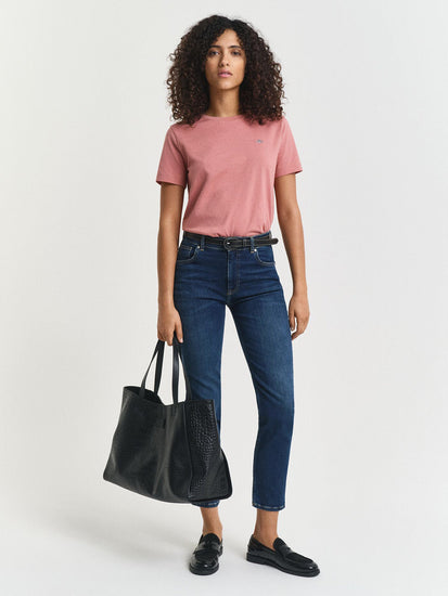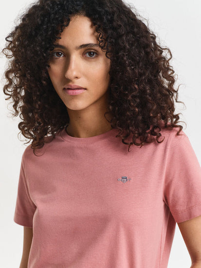 Introducing our stretchable shield t-shirt in a vibrant red color, designed for women who value comfort and style. This regular fit tee features a solid pattern and half sleeves, making it a versatile addition to your wardrobe. Crafted from pure cotton fabric, it offers breathability and softness for all-day wear. The crew neck design adds a classic touch, while the pull-on closure ensures easy dressing. Perfect for casual outings or relaxed days at home, this t-shirt combines functionality with a chic look.