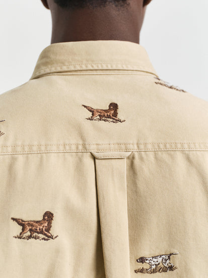 Smart and contemporary, this GANT twill shirt will command everyone’s attention. It is decorated with embroidered animal motifs for a classy effect. It features a spread collar, long sleeves, and twin flap chest pockets. The pleat styling at the back further amplifies its visual charm. Team this statement piece with a pair of chinos or jeans.
