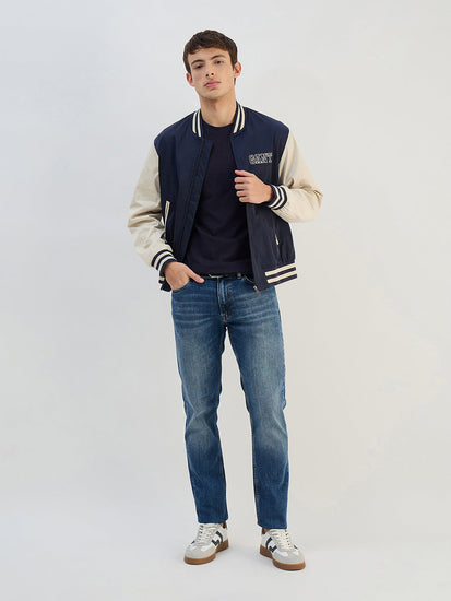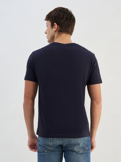 Gant Men Navy Blue Solid Pure Cotton Round Neck T Shirt