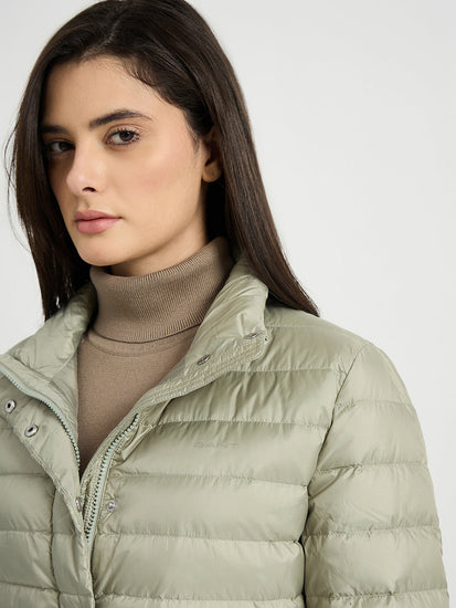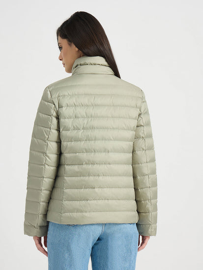 women green quilted stand collar regular fit jacket