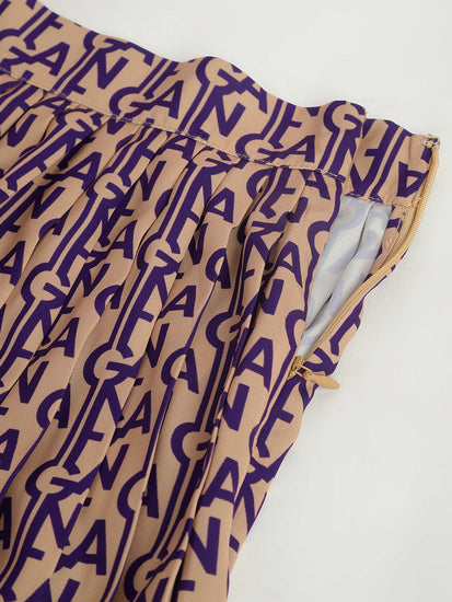 Effortlessly chic, this beige A-line skirt features a flattering pleated design and a regular fit. Crafted from recycled polyester, it boasts a mid-rise waist, concealed zip closure, and a charming printed pattern. Perfect for any occasion.