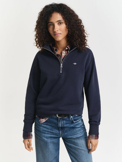 Gant Women Blue Solid Stand Collar Sweatshirt