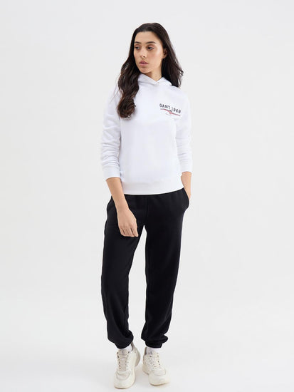 Gant Women White Solid Hooded Sweatshirt