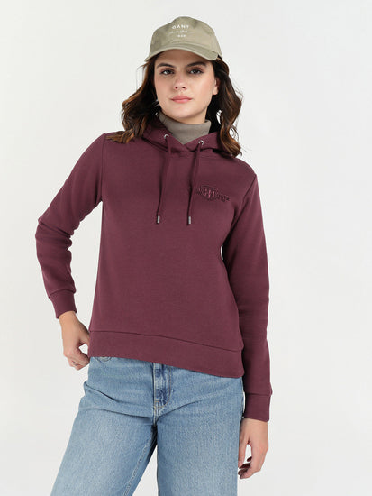 Gant Women Red Solid Hooded Sweatshirt