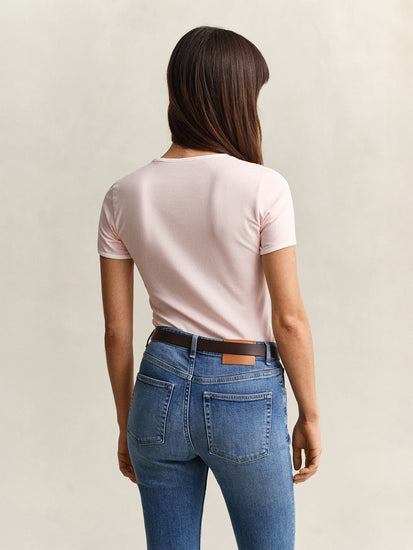 GANT Women Pink Logo Slim Fit Crew Neck T-Shirt