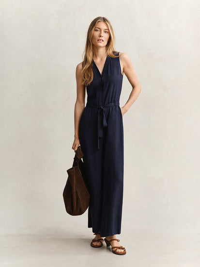 GANT Women Navy Blue Regular Fit Maxi Jumpsuit