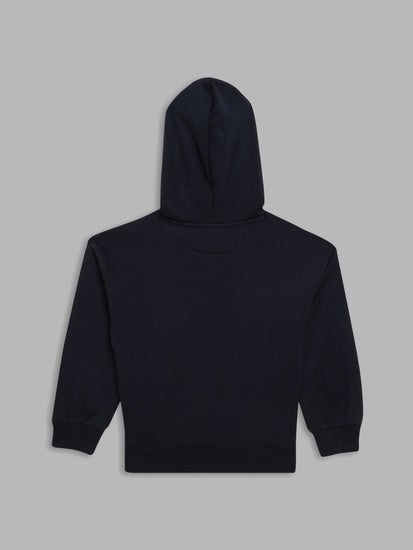 Cool and comfy, this oversized blue sweatshirt is perfect for boys who love a relaxed fit. Featuring a bold printed pattern, a cozy hood, and full sleeves, it's made from soft cotton for all-day comfort. Simply pull it on and let the good times roll!