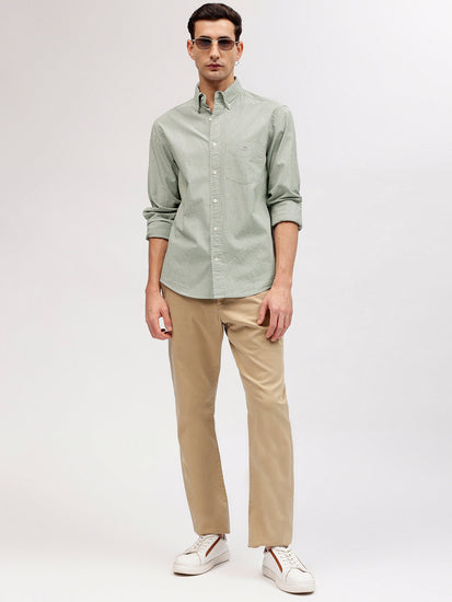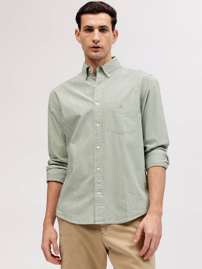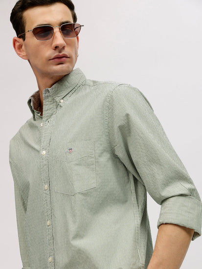 Gant Men Green Striped Button-down Collar Full Sleeves Shirt
