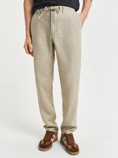 Gant Men Beige Relaxed Fit Solid Linen Trouser