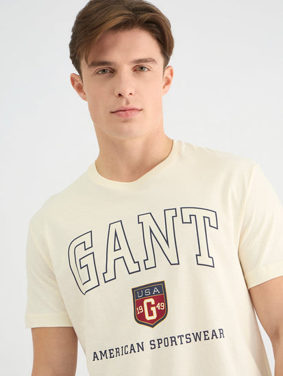 Gant Men Cream Regular Fit Solid Crew Neck Tshirt