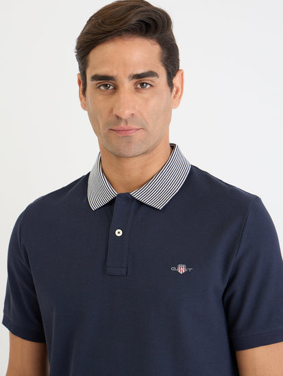 Elevate your everyday style with this classic navy blue polo shirt. Crafted from soft, breathable cotton, it offers a comfortable regular fit that moves with you. The timeless polo collar and short sleeves provide a clean and polished look, while the button closure adds a touch of sophistication. Perfect for casual outings, weekend adventures, or smart casual events, this versatile polo is a wardrobe essential.