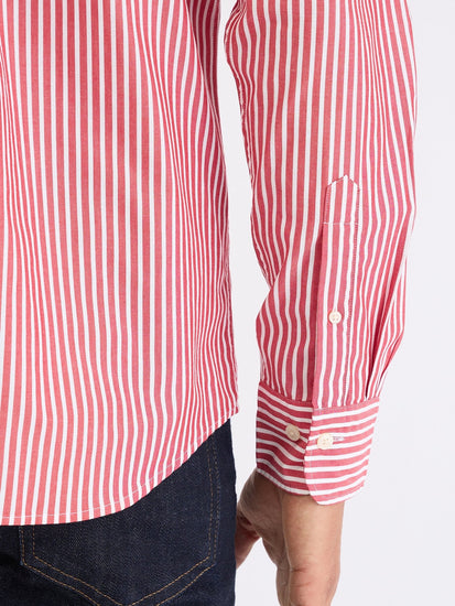 This classic men's shirt is a wardrobe essential. Crafted from soft, breathable cotton, it features a timeless striped pattern for a touch of sophistication. The regular fit ensures a comfortable and flattering silhouette, while the full sleeves and button-down collar provide a polished look. The button closure makes it easy to dress up or down, making it perfect for any occasion.