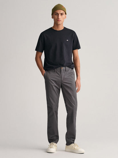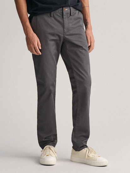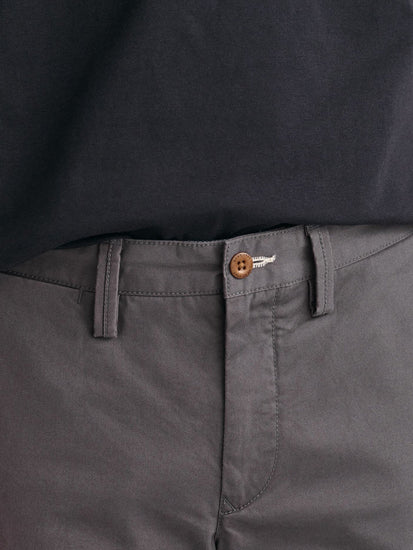 Elevate your wardrobe with our sleek grey twill chinos designed for the modern man. These slim fit trousers offer a flattering silhouette that complements any style. Crafted from a premium cotton blend fabric they provide exceptional comfort and durability for all-day wear. The solid pattern adds a touch of sophistication making them perfect for both casual and formal occasions. Featuring a mid rise they ensure a comfortable fit while the button and zip closure provide a secure and polished finish.