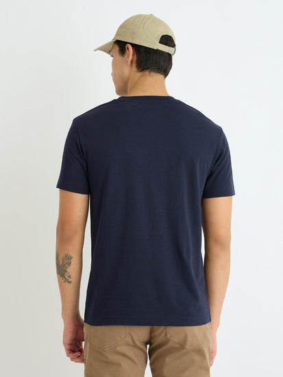 men blue solid crew neck tshirt