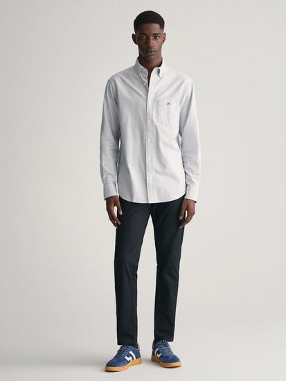 Elevate your wardrobe with our classic Oxford shirt in a timeless blue hue. Designed for the modern man, this shirt features a regular fit that offers both comfort and style. The elegant striped pattern adds a touch of sophistication, making it perfect for both casual and formal occasions. Crafted from pure cotton fabric, it ensures breathability and softness against the skin. The full sleeves and button-down collar provide a polished look, while the button closure ensures a secure fit. Ideal for any season, this shirt is a versatile addition to your collection.