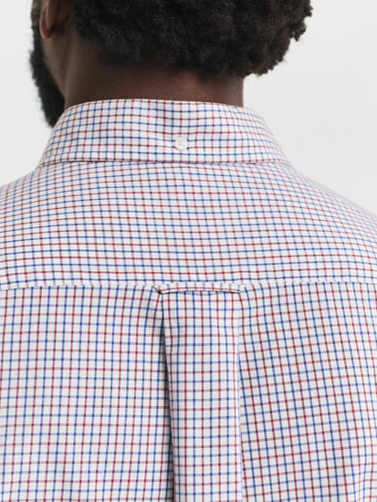 Exhibiting a charming mix of red and other hues, this shirt by GANT is a quintessential wardrobe staple. While the button-down collar lends it a timeless appeal, the micro check pattern adds to its sophistication. Team this shirt with a pair of chinos or jeans to make a distinctive fashion statement.