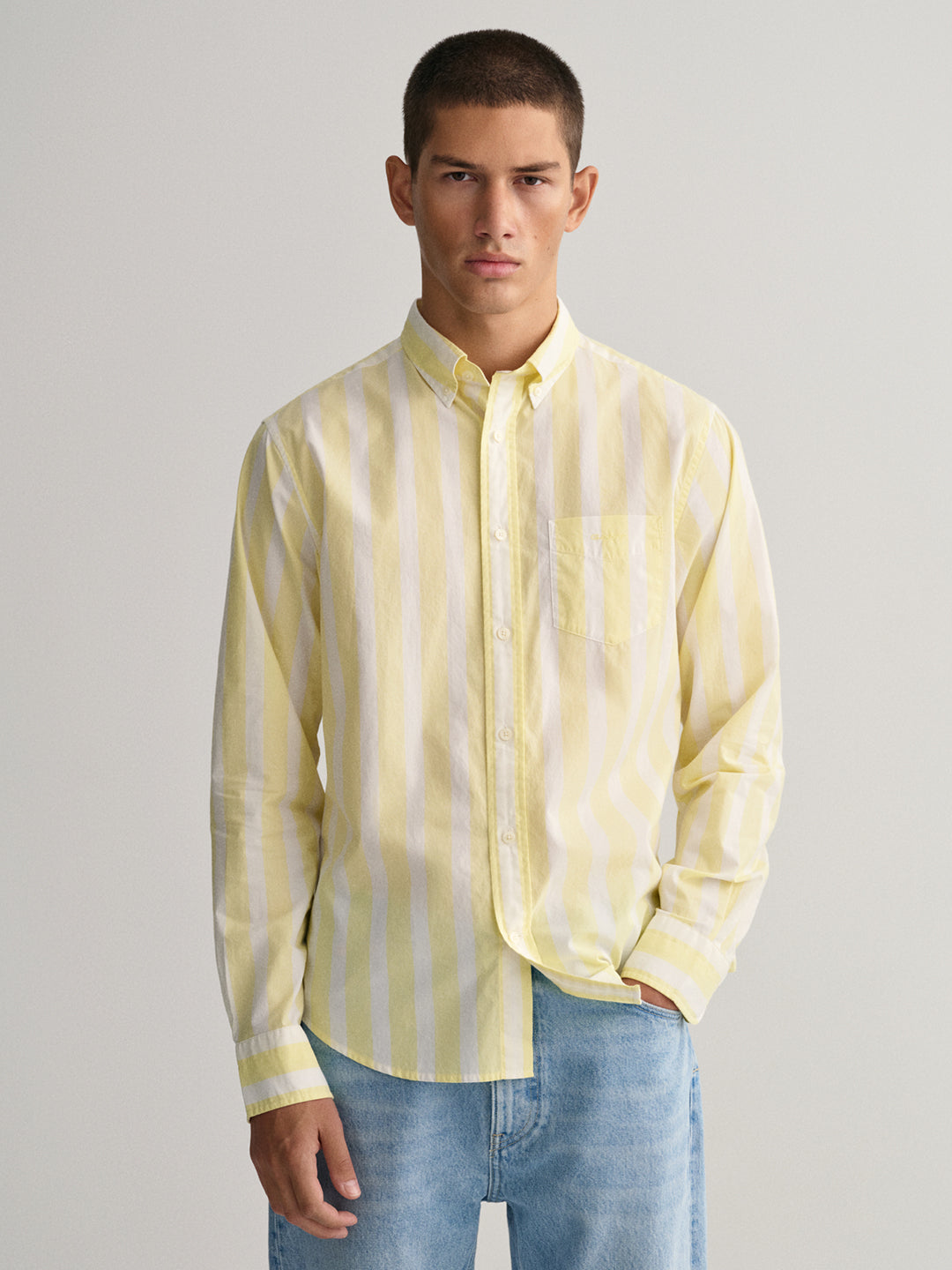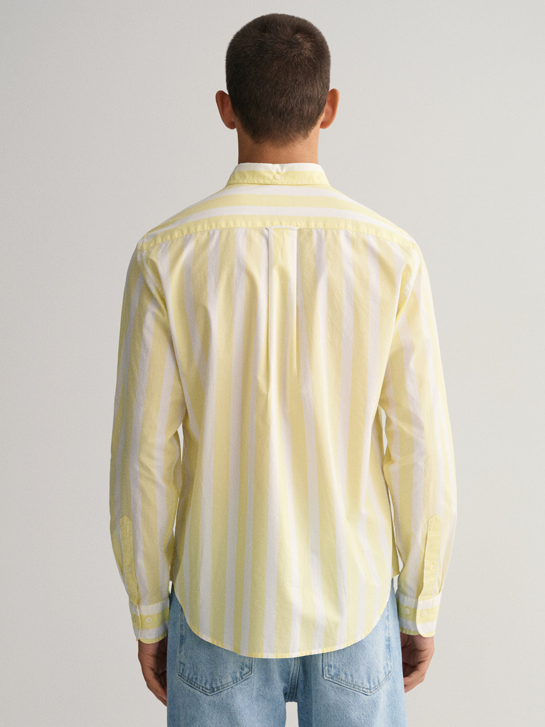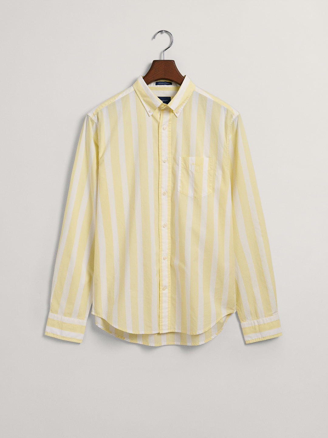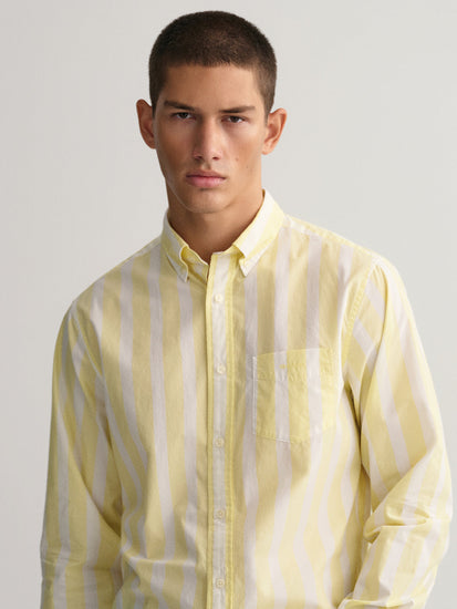 Gant Yellow Untucked Wide Broadcloth Striped Regular Fit Shirt