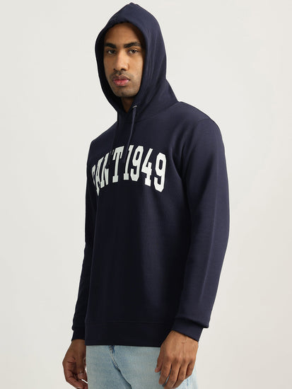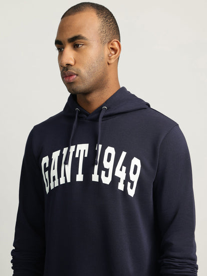 Elevate your casual style with this blue hooded sweatshirt, featuring a trendy typography pattern in a regular fit. Crafted from soft poly-cotton fabric, it offers ultimate comfort and warmth. The full sleeves and convenient pull-on closure make it perfect for layering, ensuring you stay stylish and cozy all day long.