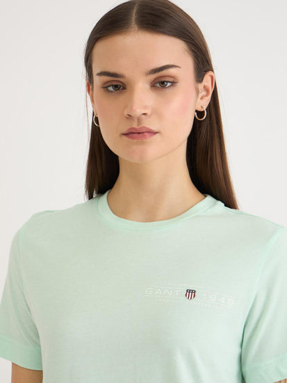 Gant Women Green Solid Crew Neck Tshirt