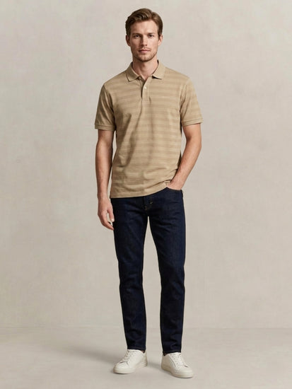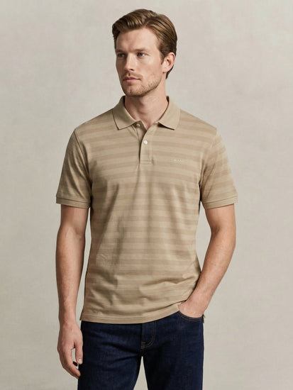 men beige cotton striped polo t-shirt