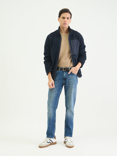 Gant Men Regular Navy Blue Textured Sweatshirt