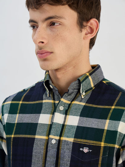 Elevate your everyday style with the GANT Men Green Checked Shirt. Crafted with a comfortable regular fit and a classic shirt collar, this timeless piece is perfect for any occasion. The green checked design adds a touch of sophistication, while the high-quality fabric ensures durability and long-lasting wear. Whether you are dressing up for a special event or keeping it casual, this shirt is a versatile addition to your wardrobe. Upgrade your look with the GANT Men Green Checked Shirt today.